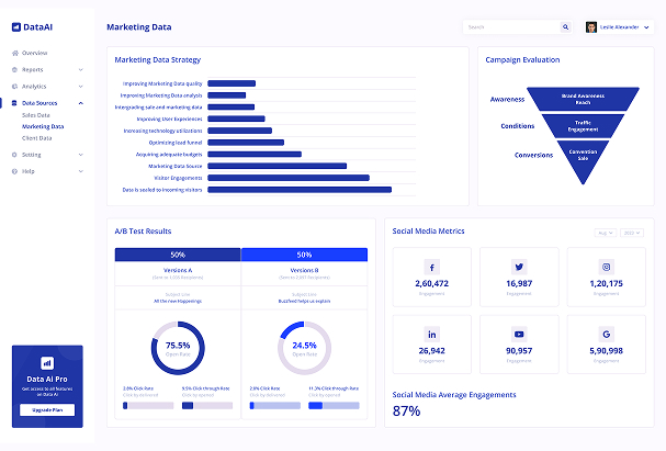 Measure growth with AI-driven insights and reports of Performance Analytics.